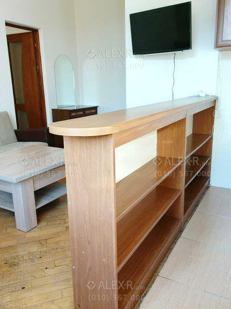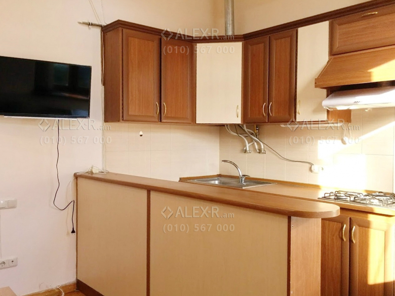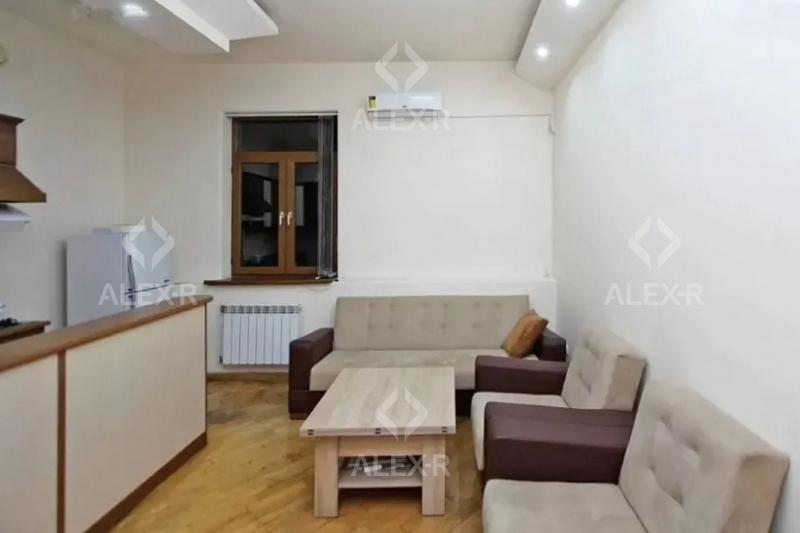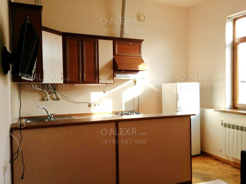 An apartment for rent in Tumanyan Street (Tumanyan-Avag Petrosyan crossroad). The rooms' quantity is 2 (1 hall and 1 bedroom). The apartment is newly renovated and is located on the top floor of the 5-storey stone building. The entrance door is iron-made, the window are euro-based and the floor is covered by parquet and is tiled. The bathroom is combined and is tiled, the electric wires and pipes are newly changed. The apartment has an air conditioner, heating system and is supplied with constant water and gas. The entrance is from the yard. The view is directed towards yard.