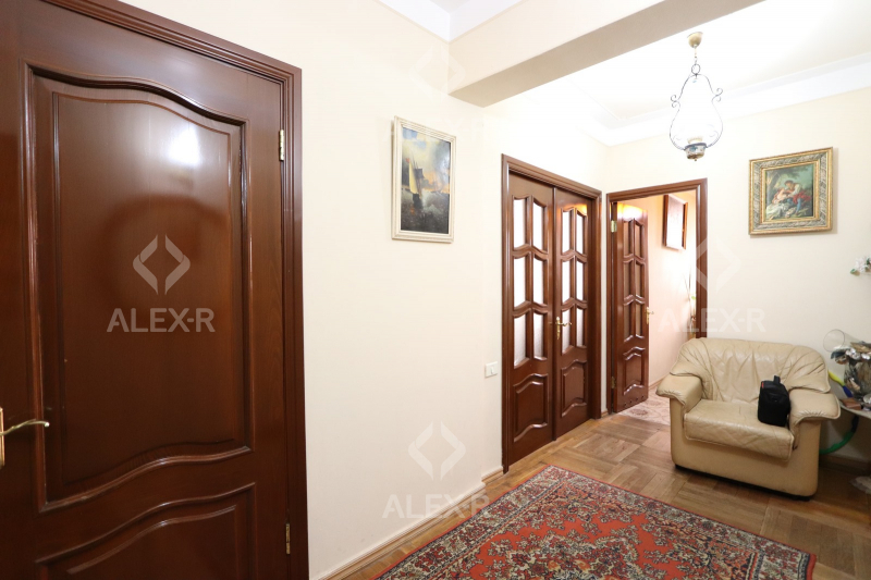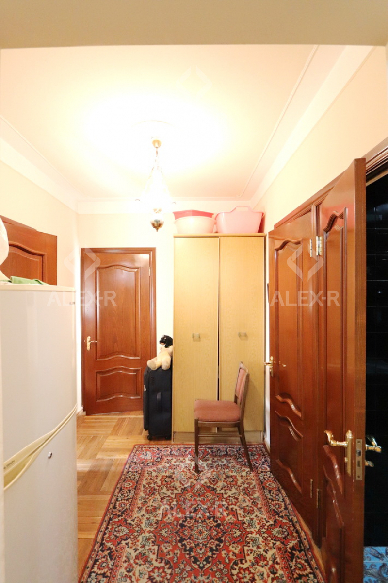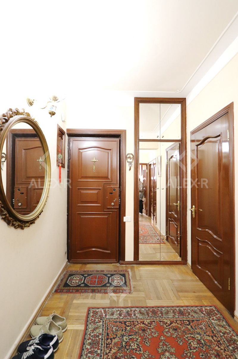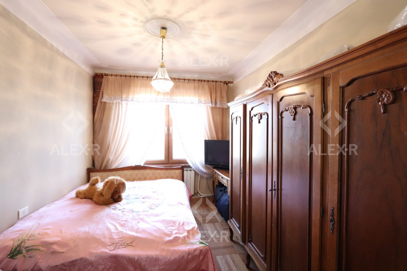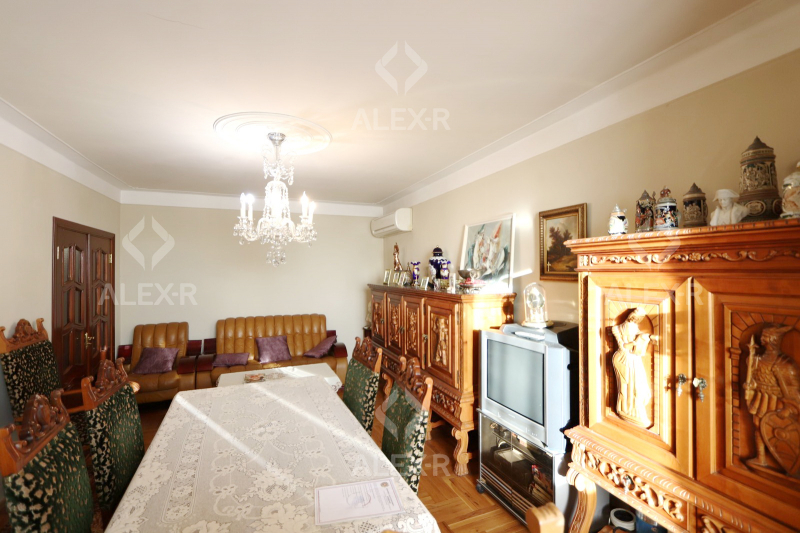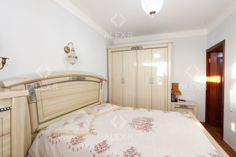 An apartment for rent in Orbeli Street. The rooms' quantity is 4 ( a hall and 3 bedrooms),. The apartment is former newly renovated and is located on the 6th floor of the 9-storey panel building that is stationed in the 1st line. The entrance door is made of iron, the windows are euro-based, the floor is covered by parquet and is tiled. The bathroom is separate and former tiled, the electric wires and pipes are newly changed. It has 2 storages, heating system, air-conditioner and is supplied with constant water and gas. The entrance is from the yard. The view is towards the yard and the street.