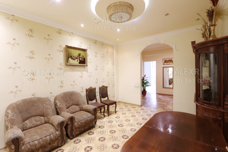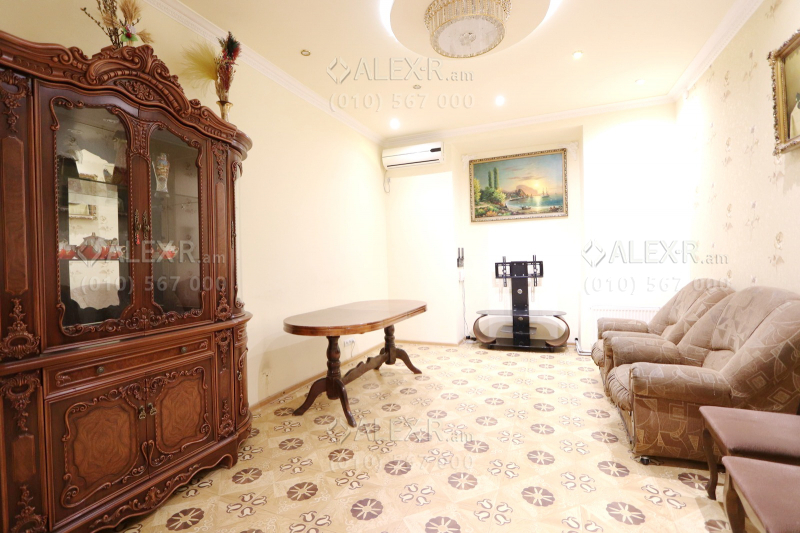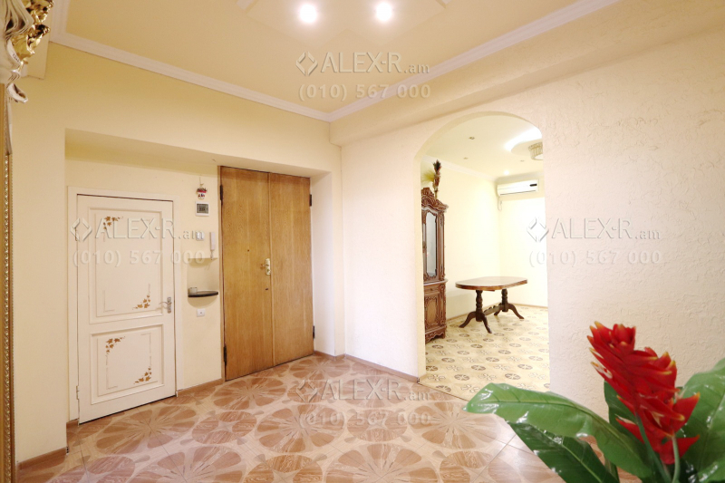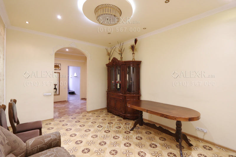 An apartment for rent in Tigran Mets Avenue. The rooms' quantity is 4 ( a hall and 3 bedrooms). The apartment is newly renovated and is located on the 3rd floor of the 5-storey stone building that is stationed in the 1st line. The entrance door is iron-made, the windows are euro-based, the floor is covered by laminate and solid granite. The bathroom is separate and tiled. It has 2 balconies, heating system, air-conditioner and is supplied with water and gas. The view is towards the yard and the street.