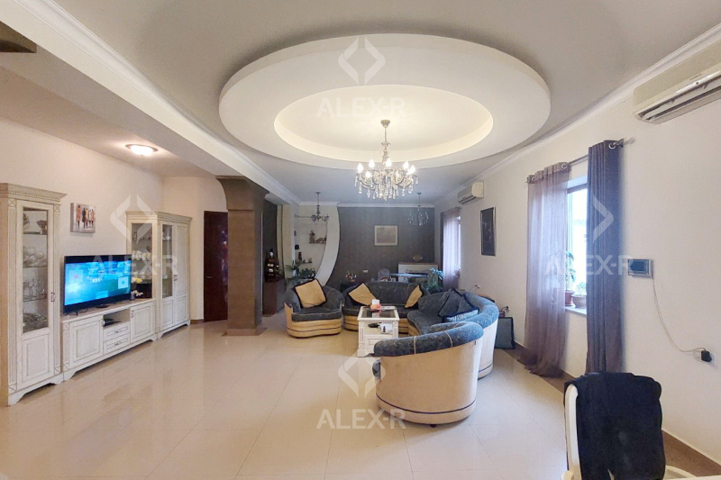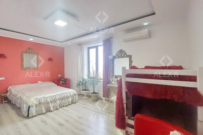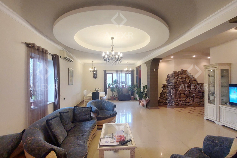 2-storey house for sale and for rent in Arinj. The rooms' quantity is 7 (2 halls and 5 bedrooms). The house is modern renovated. The entrance door is iron-made, the windows are euro-based, the floor is covered by laminate and solid-granite. The bathrooms(3) are combined and tiled. The house has 2 balconies, a well-maintained yard, garden with fruitful and decorative trees, flowerbed, pool, fireplace, pavilion, summer kitchen, gate, stone fence, cellar, three-phase electricity, air-conditioners, heating system and is supplied with water and gas.