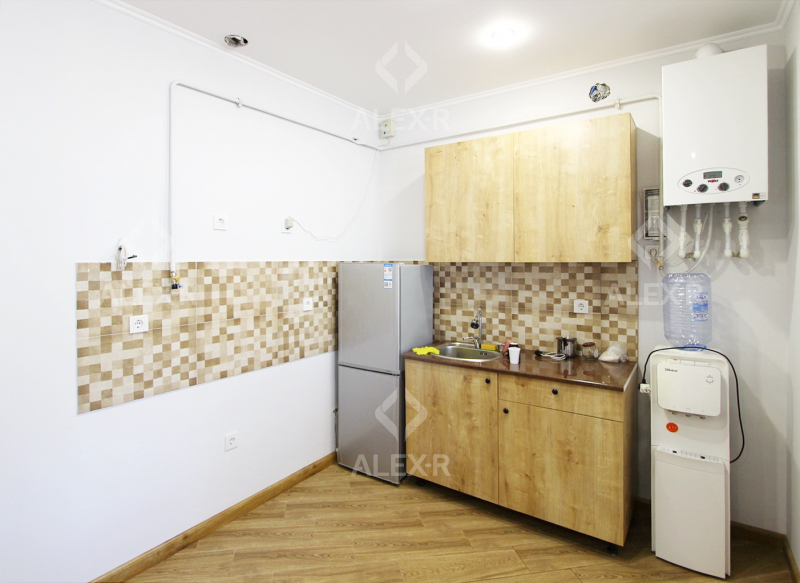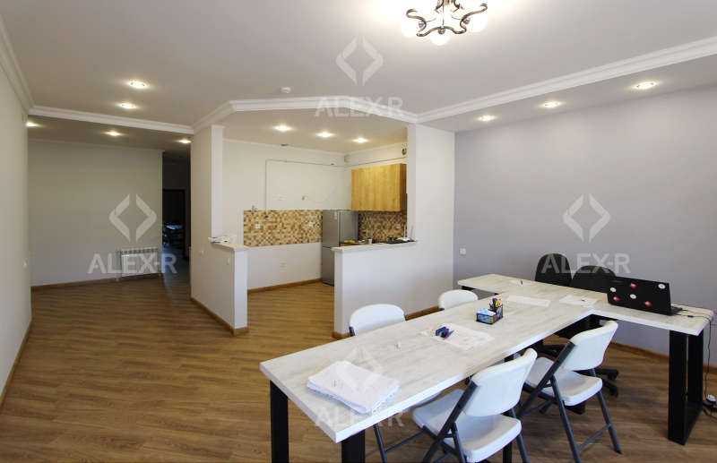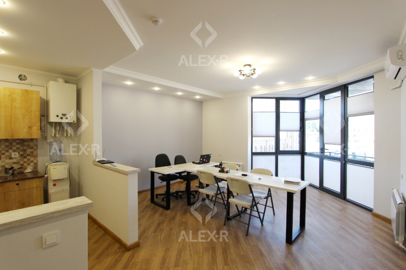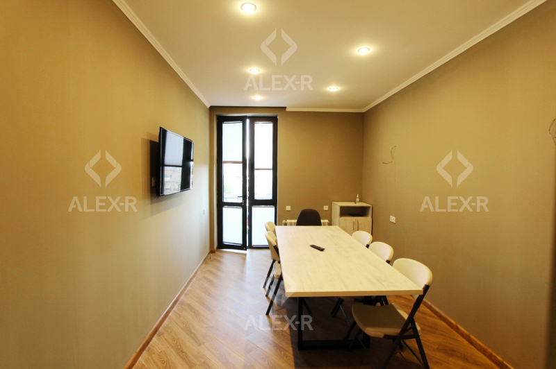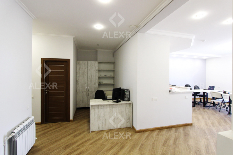 Commercial area for rent in Pirumyanner Street. The area is newly renovated and is located on the 2th floor of the 4-storey monolith building, that is stationed on the 1st line. The area has kitchen furniture, electronic devices, air-conditioner, heating system and is supplied with water and gas.