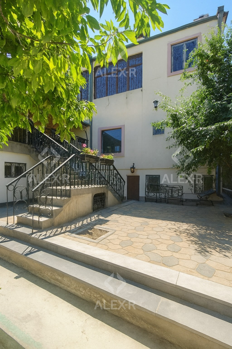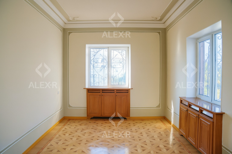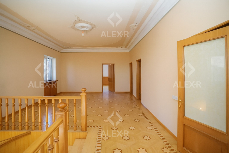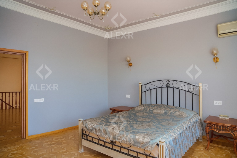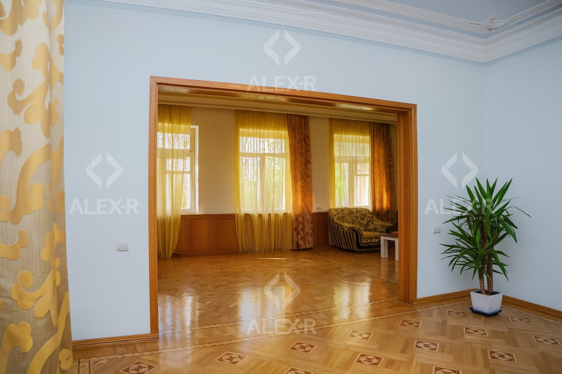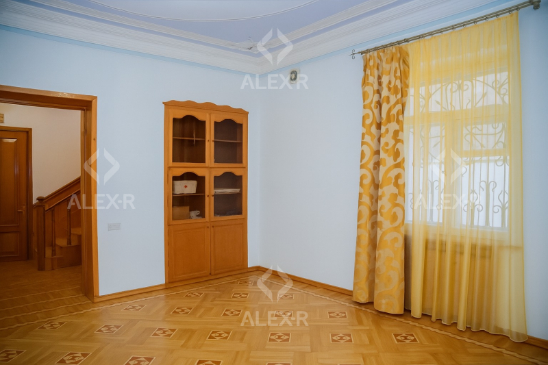 A house for sale/rent is Barbyus Street. The rooms' quantity is 8 (2 halls, 5 bedrooms). The house is newly renovated. The entrance door is iron-made, the windows are euro-based, the floor is covered with parquet. The bathrooms (4) are tiled. The house has a terrace, fireplace, well-maintained yard, garage, sauna, stone fence, conditioners, heating system and is supplied with water and gas.