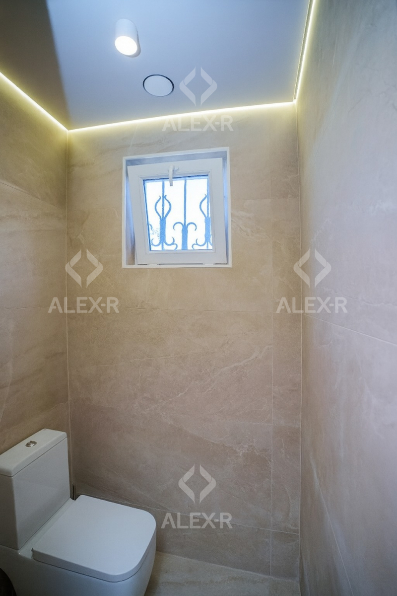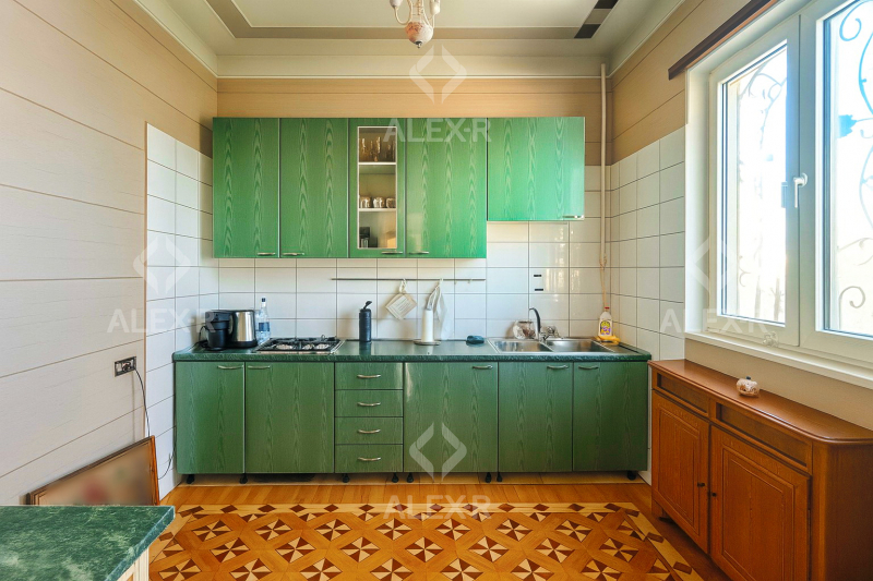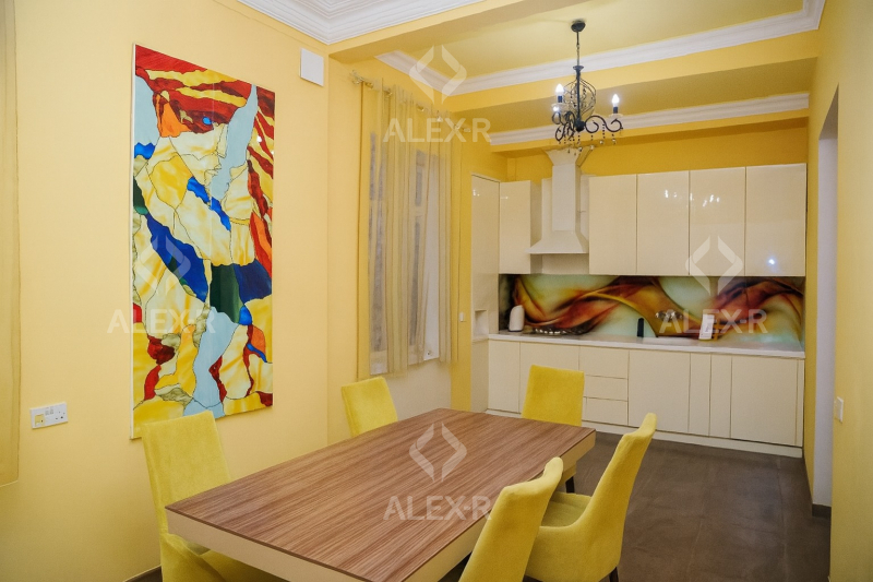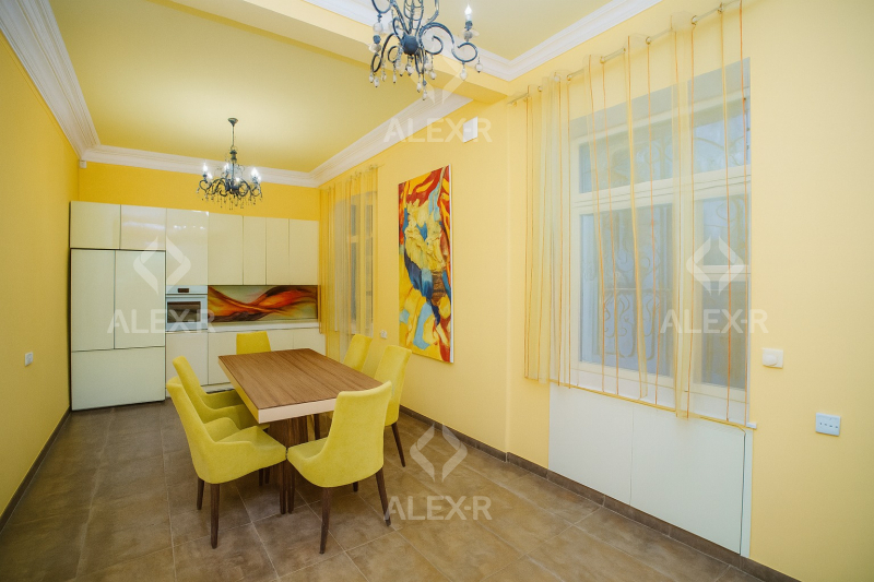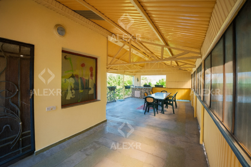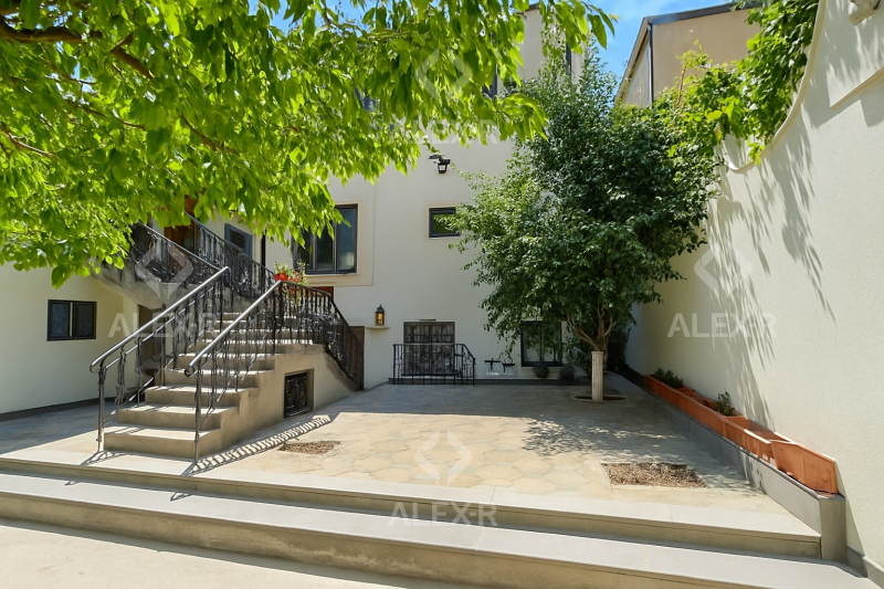 A house for sale/rent is Barbyus Street. The rooms' quantity is 8 (2 halls, 5 bedrooms). The house is newly renovated. The entrance door is iron-made, the windows are euro-based, the floor is covered with parquet. The bathrooms (4) are tiled. The house has a terrace, fireplace, well-maintained yard, garage, sauna, stone fence, conditioners, heating system and is supplied with water and gas.