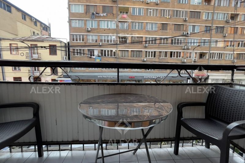 An apartment for sale in Tumanyan Street. The apartment is middle renovated and is located on the 2nd floor of 4-storey stone building. The rooms' quantity is 3 (a hall and 2 bedrooms). The entrance door is iron-made, the windows are euro-based, the floor is covered with parquet. It has a balcony, fire place system of heating and is supplied with water and gas.