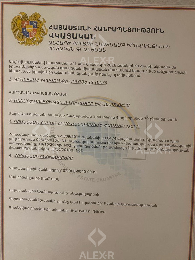 A 2-storey house for sale in the village of Parpi. The rooms' quantity is 5 (2 halls and 3 bedrooms). The house is partially renovated. The entrance door is iron-made , the windows are euro-based, the floor is covered with solid granite and laminate. Two bathrooms are combined and tiled. The house has a balcony, an attic, a fireplace, a well-maintained yard, garden with fruitful trees and it supplied with water.