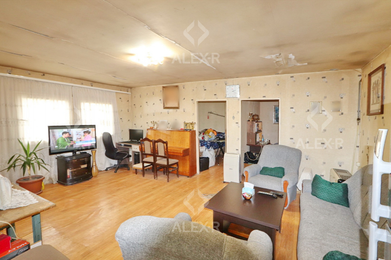1-storey wooden house for sale in Ghapantsyan Street. The rooms' quantity is 3 (a hall and 2 bedrooms). The house is middle renovated. The entrance door is iron-made, the windows are wooden, the floor is wooden. The bathroom is combined and tiled. It has a security system, a basement (7sq.m), a garage (60sq.m), a stone fence, a summer kitchen, a fireplace, a well-maintained yard, fruitful trees, a heating system and is supplied with water and gas.
