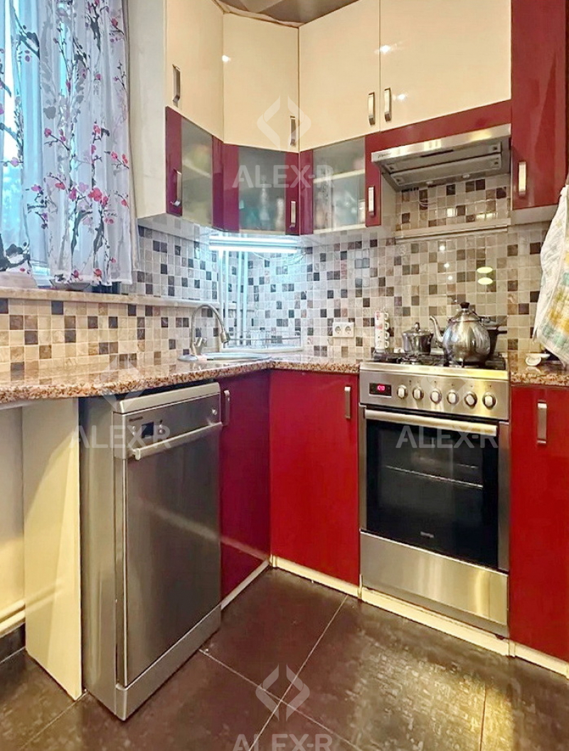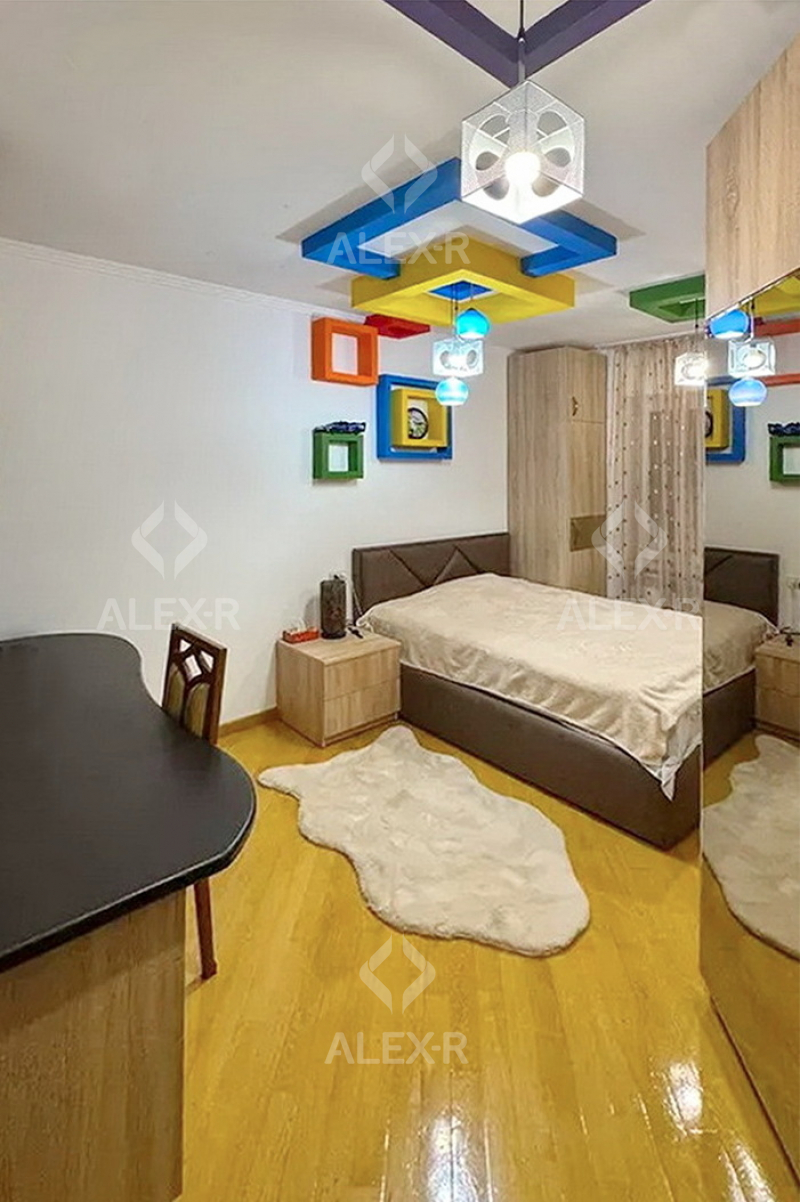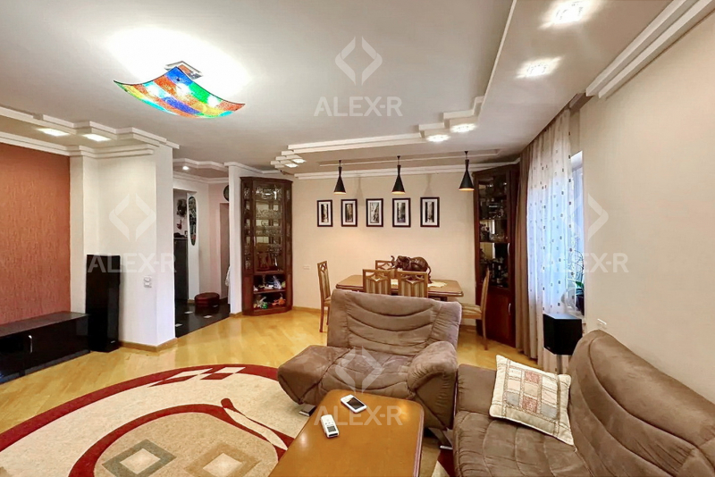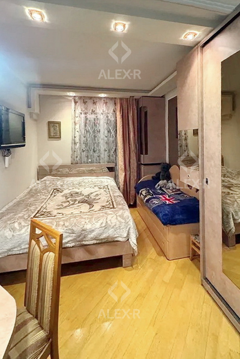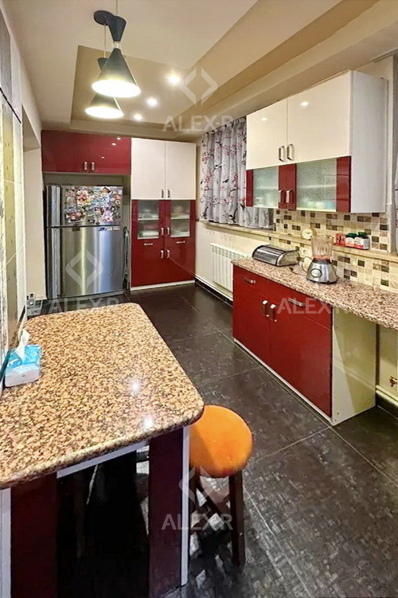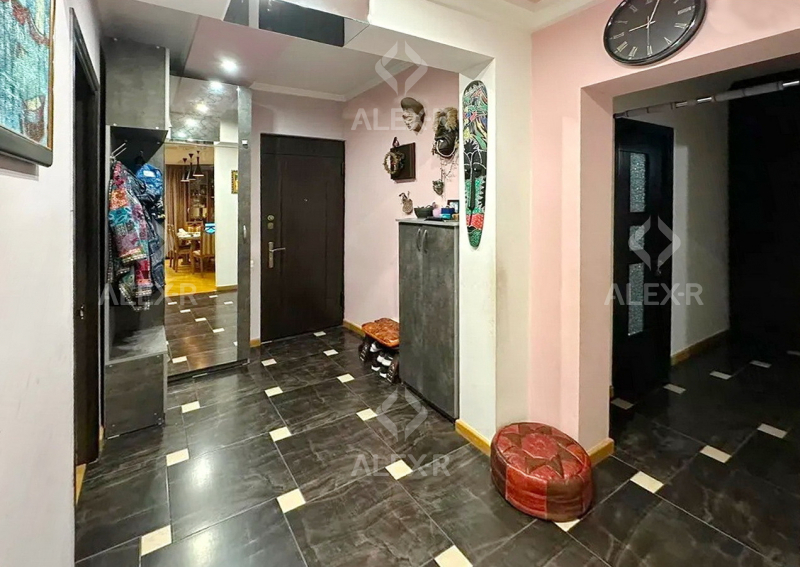 An apartment for sale is Davtashen. The rooms' quantity is 4 ( a studio and 3 bedrooms). The apartment is newly renovated and is located on the 2nd floor of the 9-storey panel building. The entrance door is iron-made, the windows are euro-based, the floor is covered with parquet. The bathroom is combined and tiled. The apartment has a balcony, a storage room, a heating system, garage 20sq. m (for additional fee) and is supplied with water and gas. The apartment is being sold with furniture and equipments.