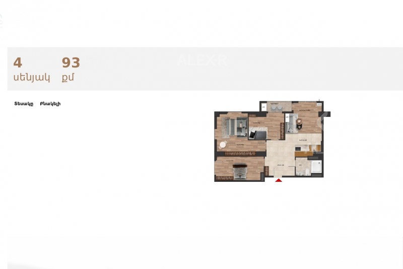 An apartment for sale in Davtashen. The rooms' quantity is 4 (a studio and 3 bedrooms). The apartment is in the zero condition and is located on the 15th floor of a 17-storey monolith building. The entrance door is iron-made, the windows are euro-based. It has a balcony, a bathroom.