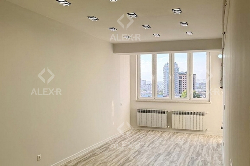 An apartment for sale is V. Hambardzumyan Street. The rooms' quantity is 3 (a studio and 2 bedrooms) The apartment is newly renovated and is located on the 9th floor of the 10-storey panel building. The entrance door is iron-made, the windows are euro-based, the floor is covered with laminate. The bathroom is combined and tiled. It has a balcony, a heating system and is supplied with water and gas.