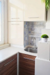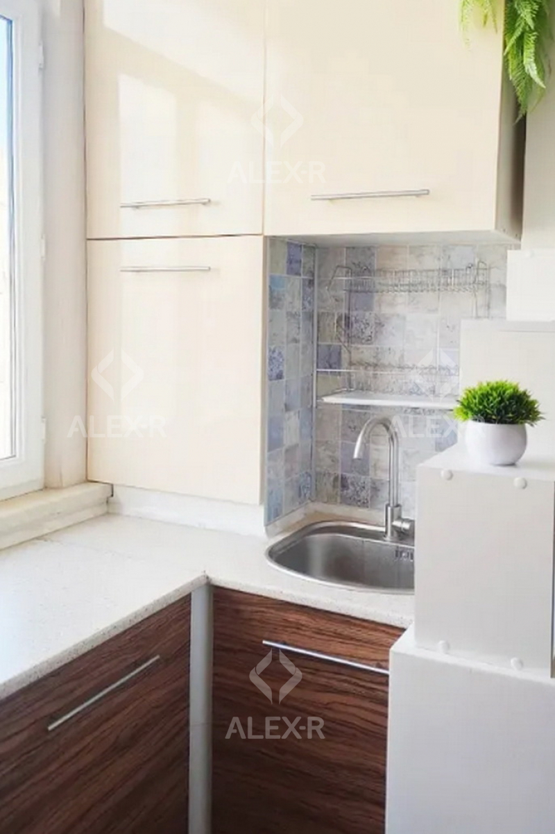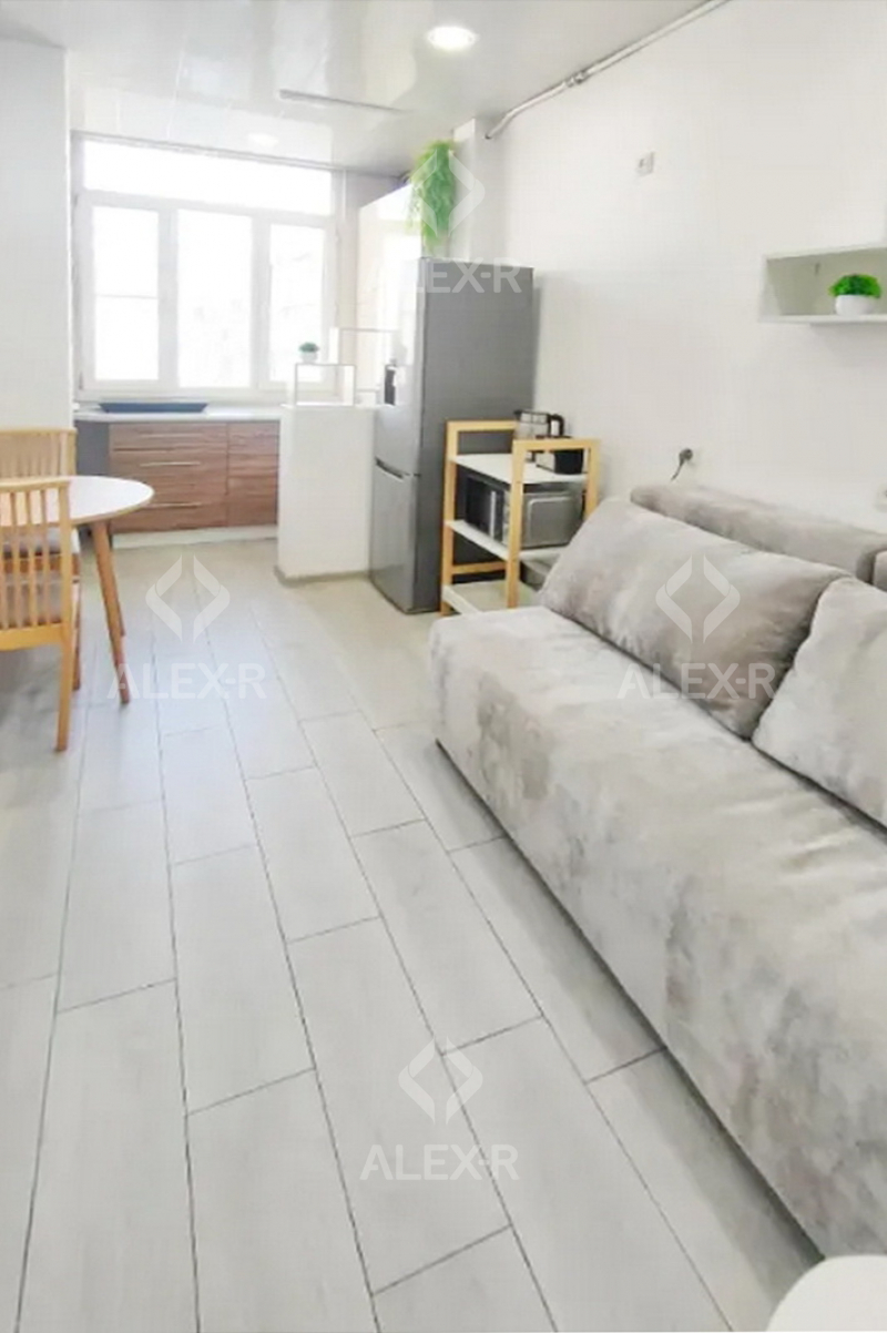 An apartment for sale in Er. Kochar Street. The rooms' quantity is 1 (a studio). The apartment is modern renovated and is located on the 10th floor of the 10-storey panel building. The entrance door is iron-made, the windows are euro-based, the floor is covered with laminate. The bathroom is combined and tiled. The apartment has a heating system and is supplied with water and gas.