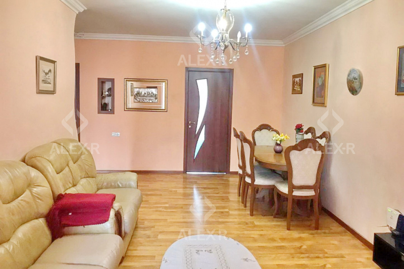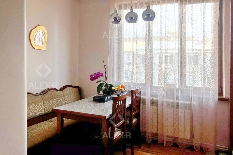 An apartment for sale in Abovyan Street. The rooms' quantity is 3 (a hall and 2 bedrooms). The apartment is newly renovated and is located on the 5yh floor of the 5-storey stone building. The entrance door is iron-made, the windows are euro-based, the floor is covered with laminate and tiled. The bathroom is combined and tiled. The apartment has 2 balconies, heating system and is supplied with water and gas.