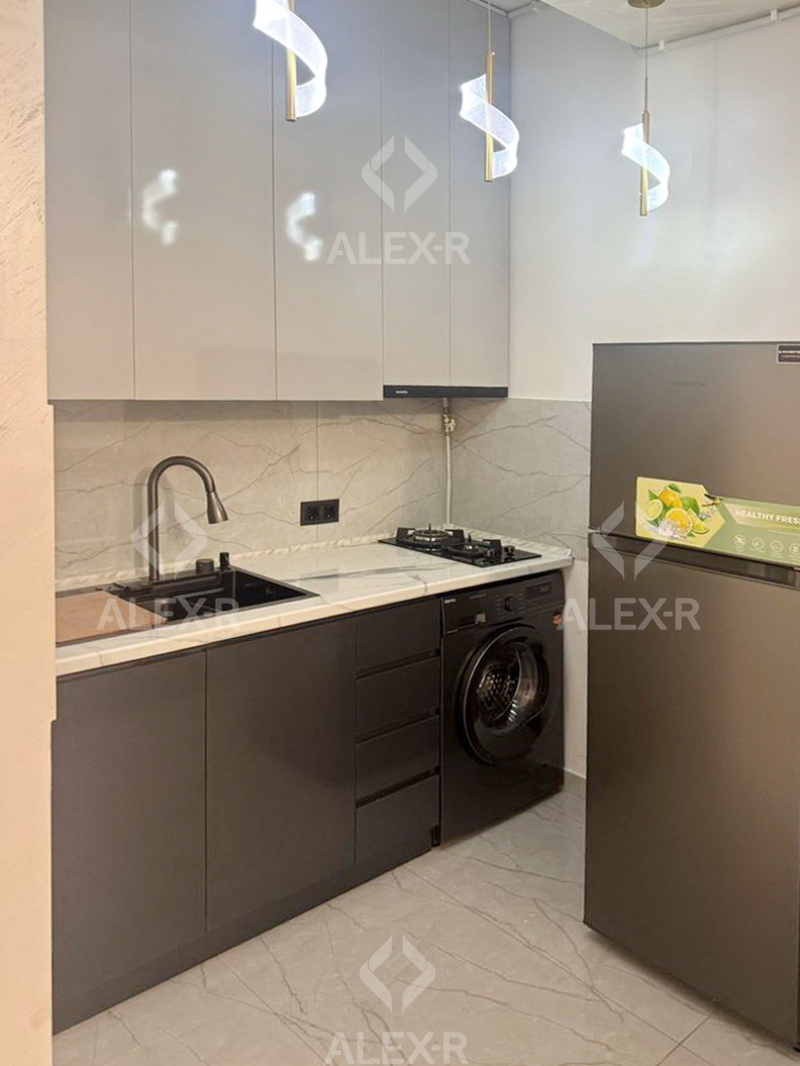 An apartment for rent in K.Kerkorian Street. The rooms' quantity is 2 (a hall and 1 bedroom). The apartment is newly renovated and is located on the 11th floor of 16-storey monolith building. The entrance door is iron-made, the windows are euro-based, the floor is covered with laminate. The bathroom is combined and tiled. It has a balcony, heating system and is supplied with water and gas. It is being rented with furniture and electronic devices.