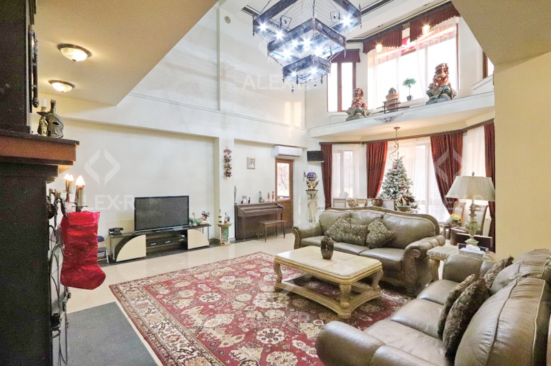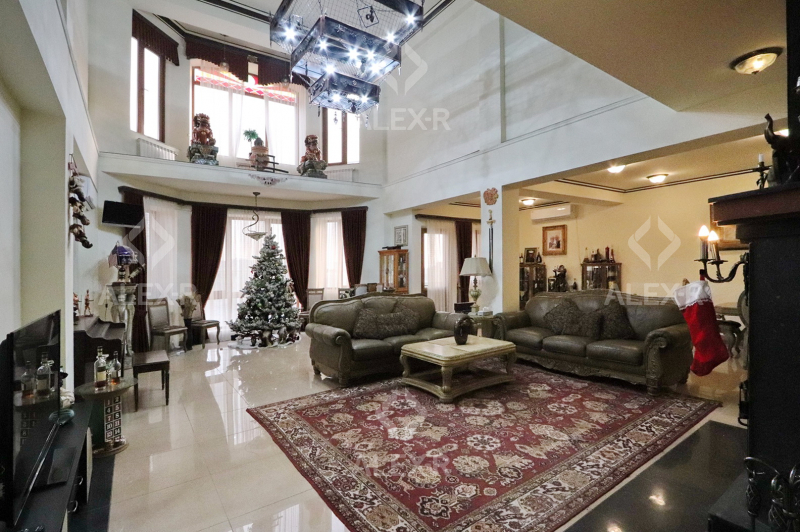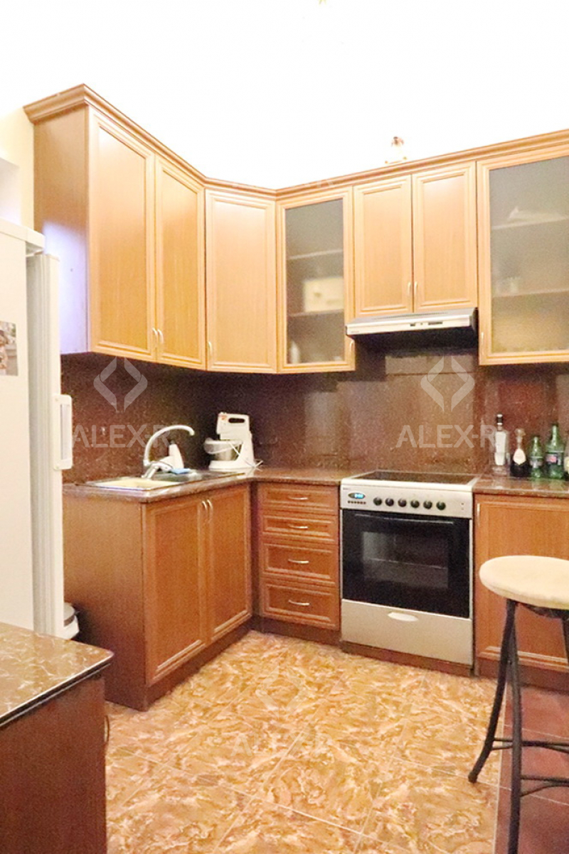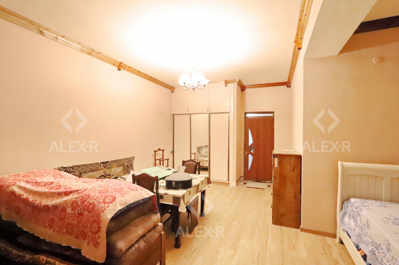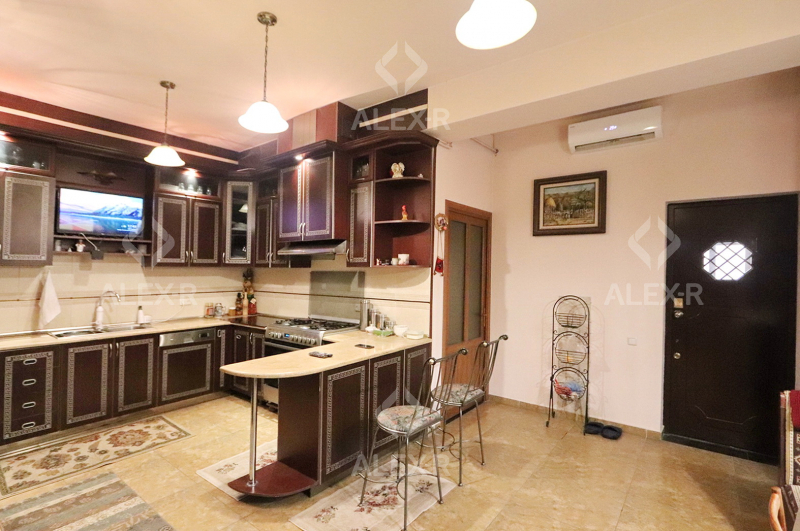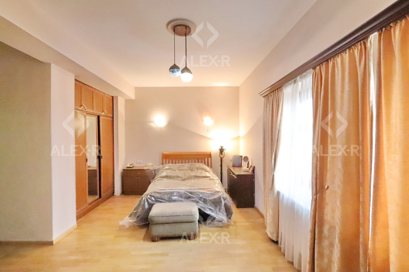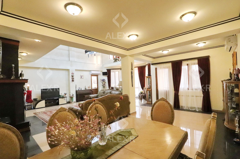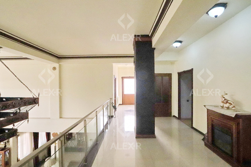 A 2-storey house for sale in Davtashen. The rooms' quantity is 8. The house is middle renovated. The entrance door is iron-made, the windows are euro-based, the floor is covered with parquet, 5 bathrooms are modern tiled. It has 3 balconies, 2 kitchens, an office room, a game room, a laundry room, a sauna, 2 dressing rooms, a storage room, a fireplace, an attic, a landscaped yard with fruitful trees and a flower garden, a pool, a summer kitchen, a cellar, a garage, a fence, an air-conditioner, a heating system and is supplied water and gas. The house is sold with furniture and appliances.