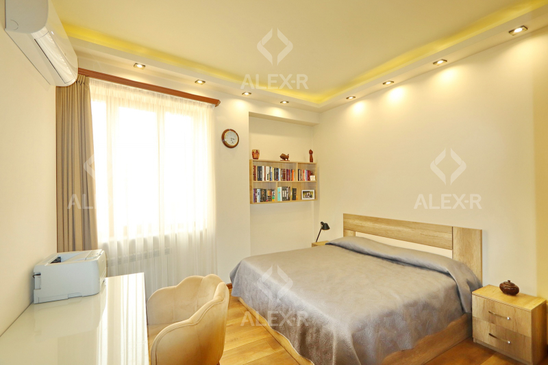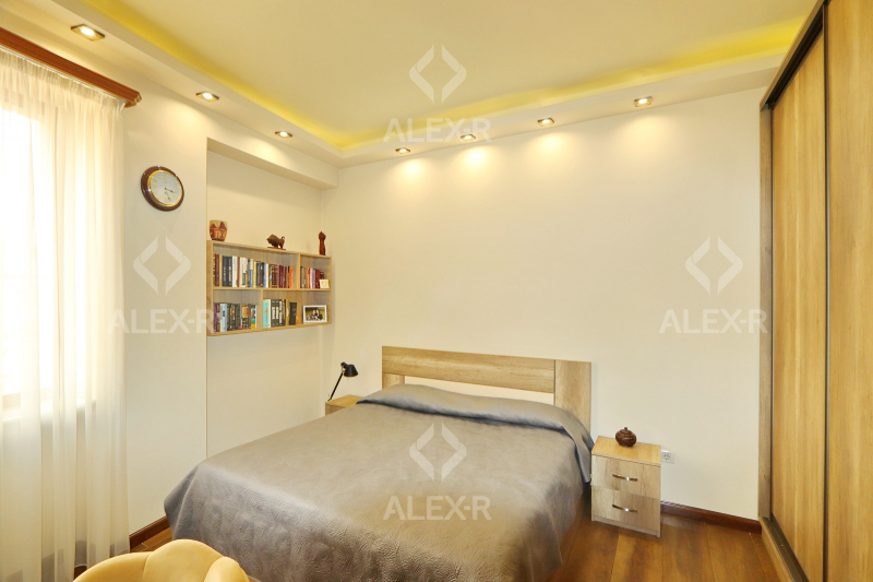 An apartment for sale in Ekmalyan Street. The rooms' quantity is 4 (a hall and 3 bedrooms). The apartment is newly renovated and is located on the 8th floor of the 18-storey monolith building. The entrance door is iron-made, the windows are euro-based, the floor is covered with laminate and press granite. The bathroom is combined and tiled. The apartment has a balcony, a conditioner, heating system and is supplied with water and gas.