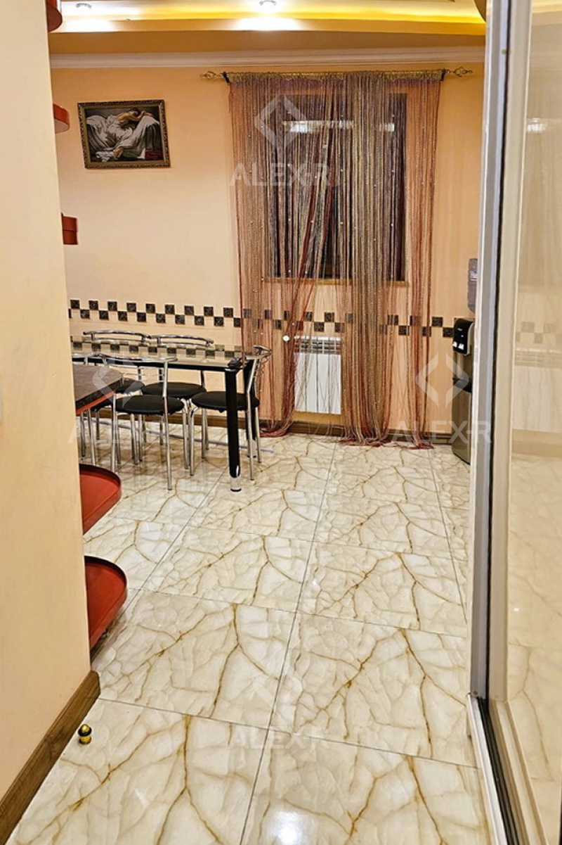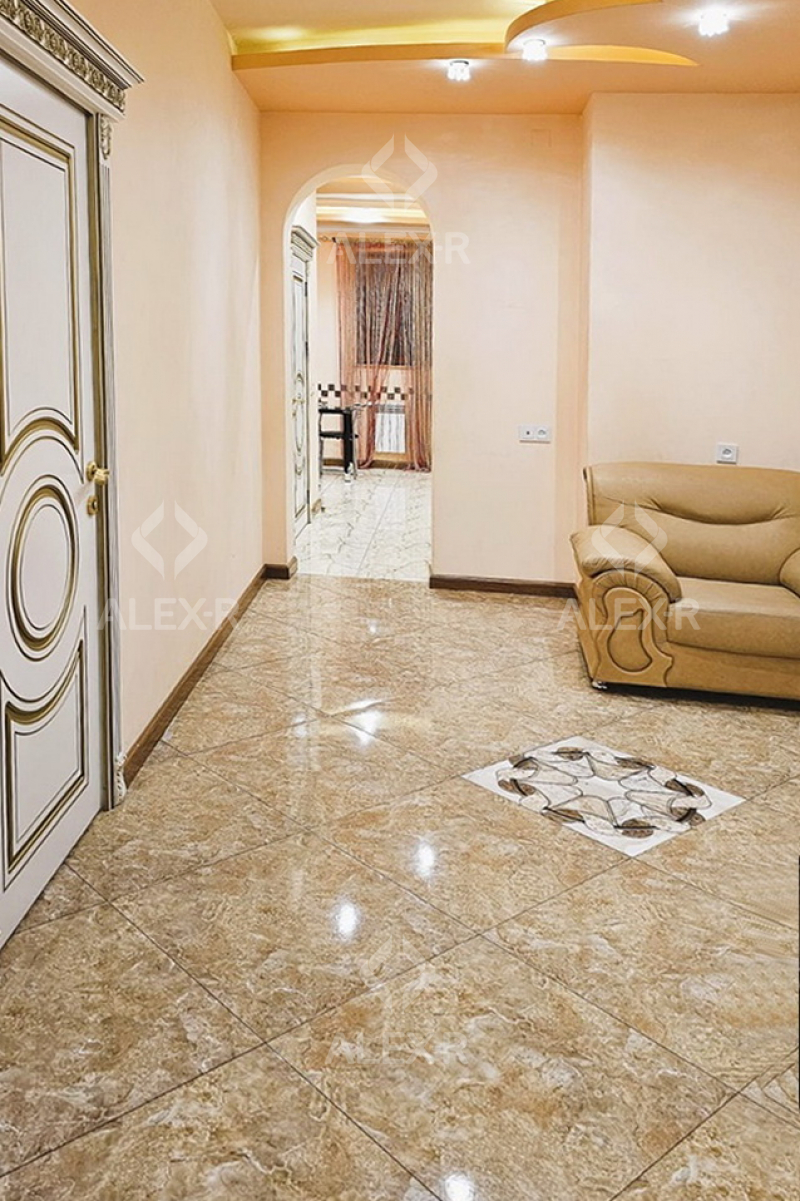 A 2-nd floor of a 3-storey house for rent in Arshakunyac Avenue, (with a separate entrance). The rooms' quantity is 4(a hall and 3 bedrooms). The house is newly renovated. The entrance door is iron-made, the windows are euro-based, the floor is covered with laminate and is tiled. The bathroom is combined and tiled. It has a security and heating systems and is supplied with water and gas.