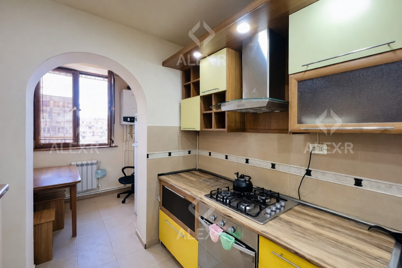 Продается 1 комнатная квартира переделанная в 2-х, расположенная на 6-ом этаже 9 этажного панельного здания на улице А. Хачатряна. В квартире капитальный ремонт. Установлены железная входная дверь и евро-окна, пол покрыт паркетом, плиткой. Смежный санузел облицован плиткой. Имеются система отопления, кондиционер, снабжение водой и газом. Квартира продается вместе с мебелью и техникой.