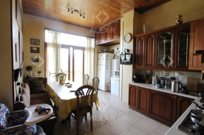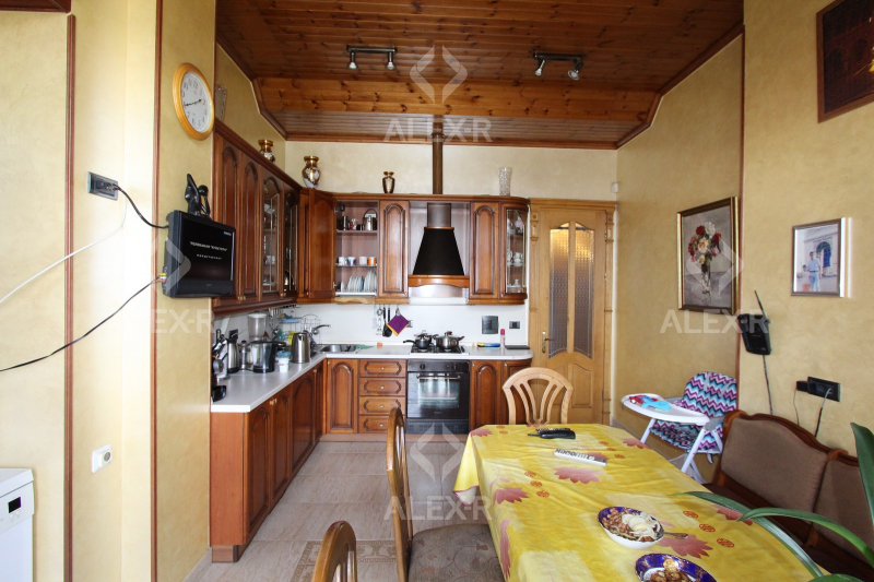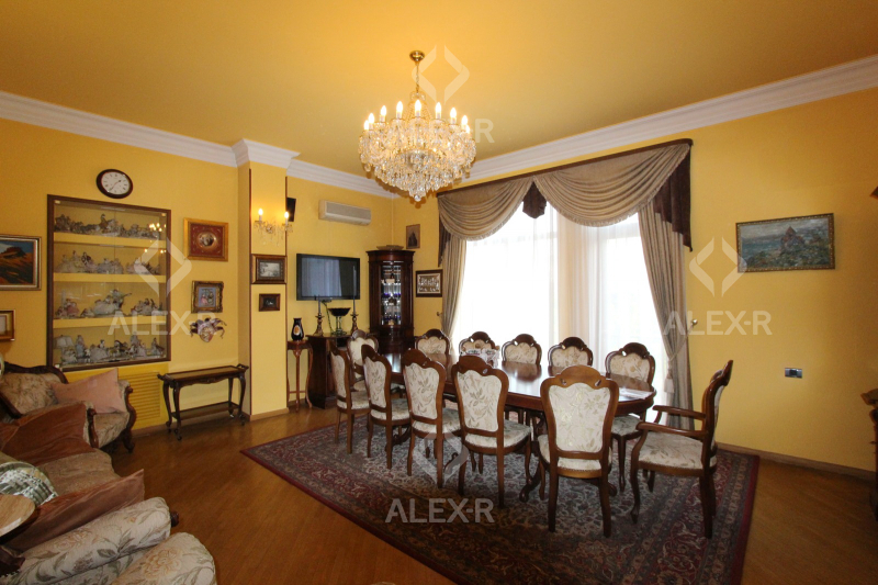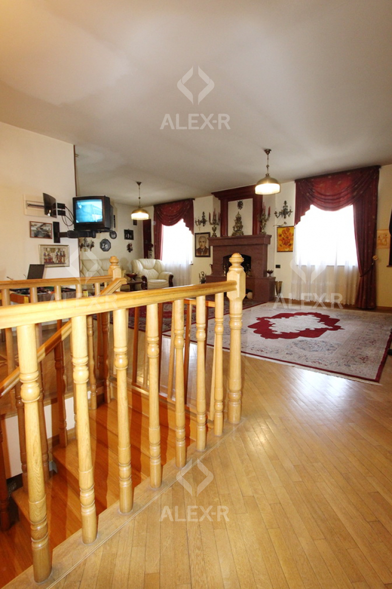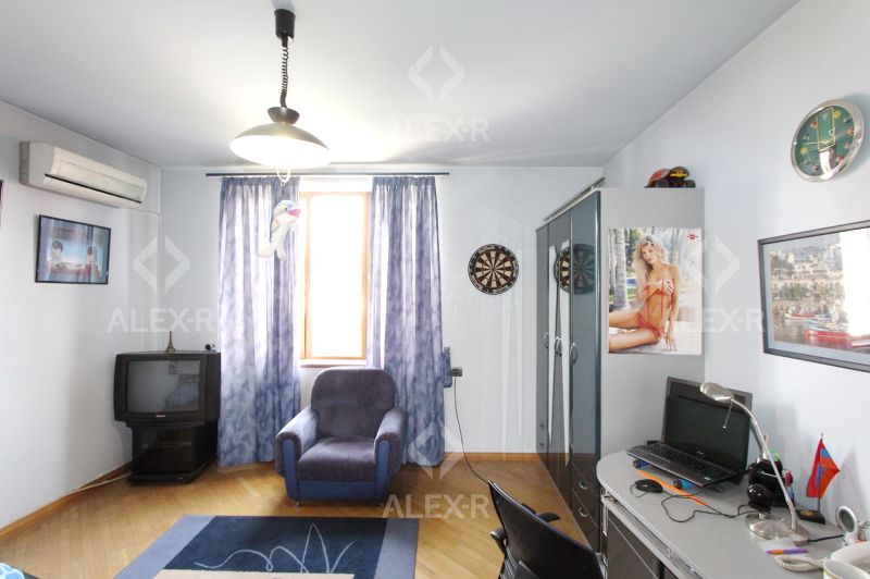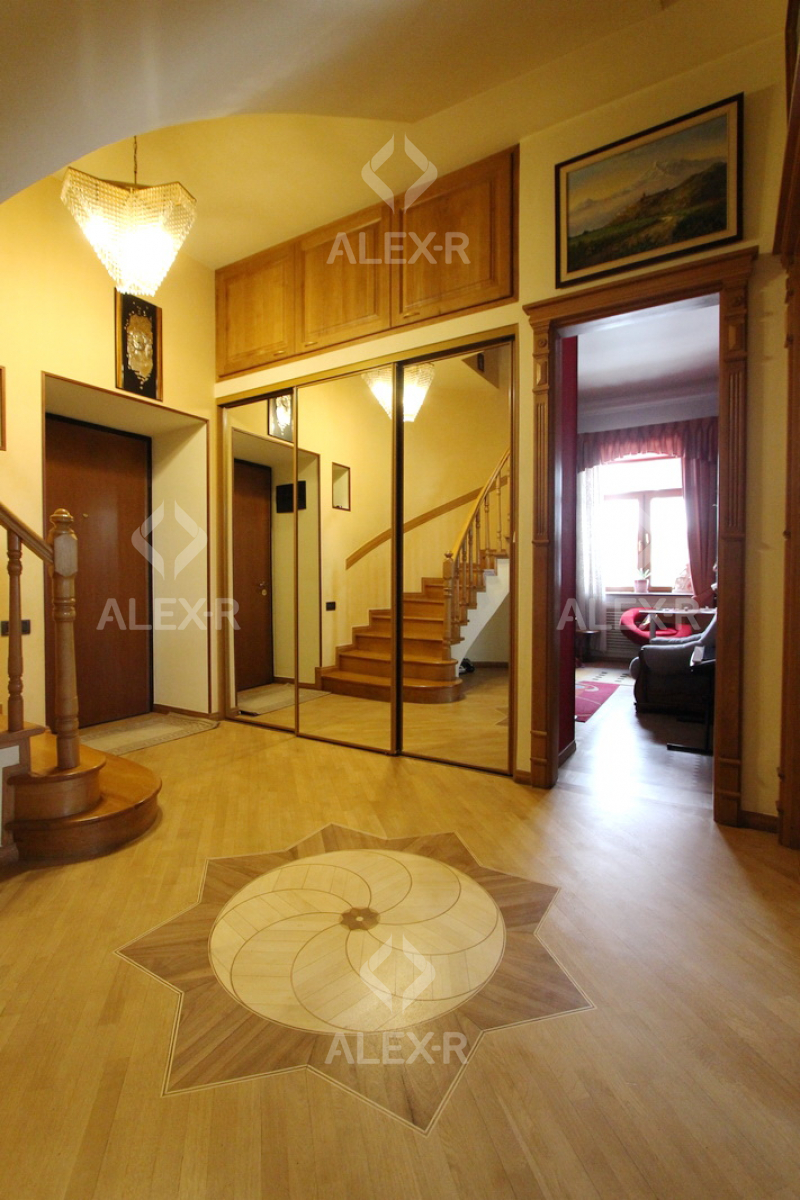 Продается 5 комнатная квартира-дуплекс на проспекте Маштоца(около кинотеатра "Наири") на 4-м и 5-м этаже 4 этажного каменного дома. В квартире капитальный ремонт, 1 линия. Входная дверь железная, паркетный и плиточный пол, евроокна. Санузел стильно облицован плиткой, эл. проводка и трубы сменены, крыша отремонтирована. Имеется навесной балкон(2), французский балкон, камин, теплый пол, сауна, чулан( в квартире и подъезде), кухонная мебель, кондиционер(4), постоянная вода. Вход с улицы. Вид на двор.